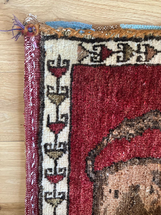 Handmade Vintage Turkish Small Rug 3'4" X 3'9"