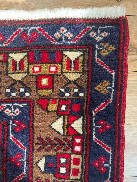 Handmade Vintage Turkish Entryway Rug 1'10" X 3'6"