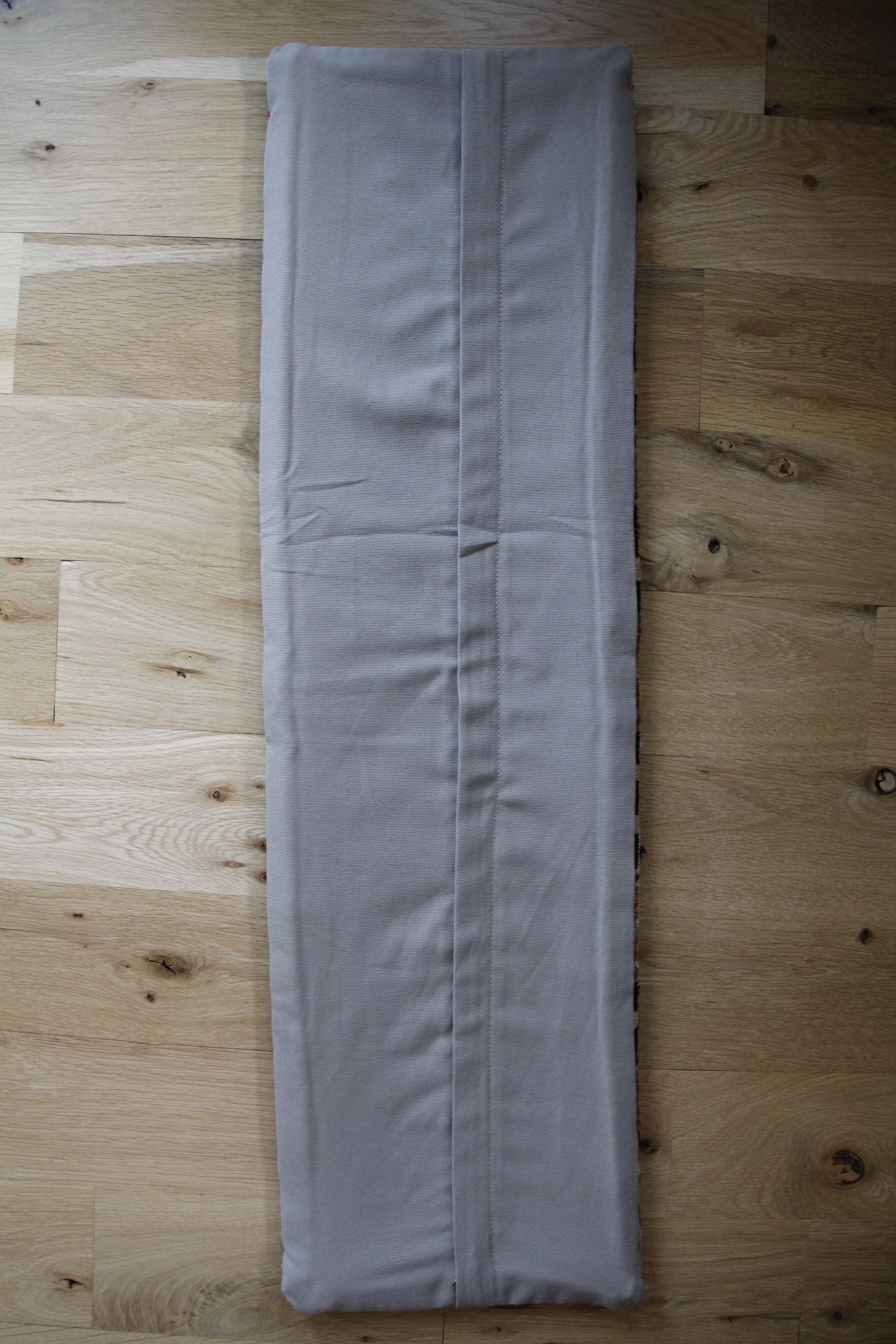 The back is crafted from durable cotton fabric with a hidden zipper closure for easy use.